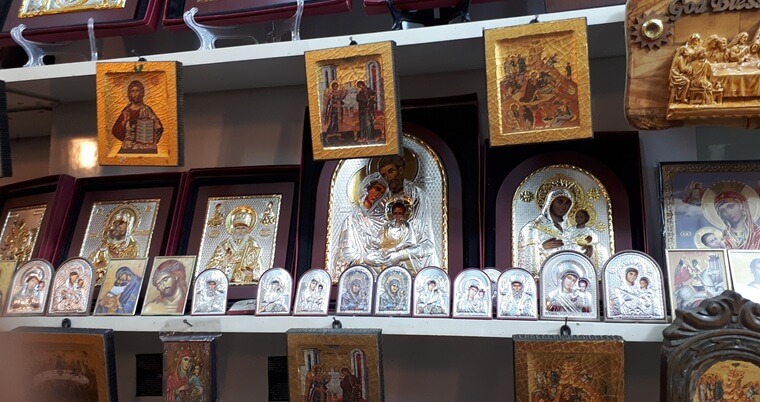 One of the most beautiful examples of an iconostasis can be found in the Greek Catholic Church in Jerusalem, but there are other iconostases in many churches of the city. Many icons can be found in well-known holy places, including some particularly sacred images, such as the image of Mary as Panagia Ierosolymitissa at the Tomb of Mary.