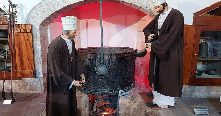 The Bektashi babas were like abbots for the Janissary boys. The babas would accompany the Janissaries when they became soldiers on the battlefield. The head of the Bektashi Order used to come, after his election, to Istanbul, where the hat symbolizing his position was placed on his head by the commander of the Janissaries. And on the other side, the Janissary headquarters was at the religious center of the Order in the village of Haji Bektash in Cappadocia.